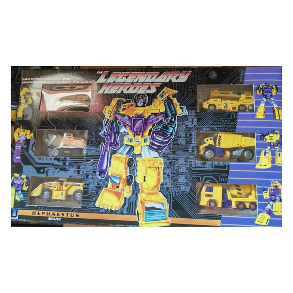 This Hephaestus( in homage to G1 Devastator ), would be the 1st legends-class combiner brought by NewAge ( A new 3rd party Transformer studio focusing on pocket size toys), the whole set features as below: