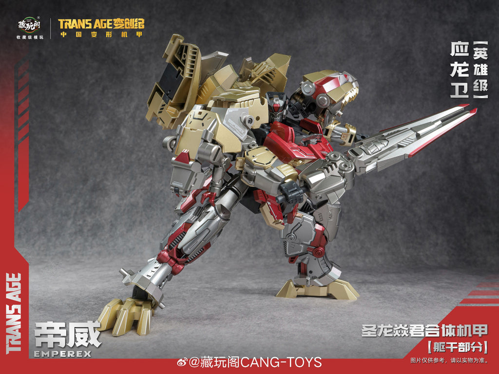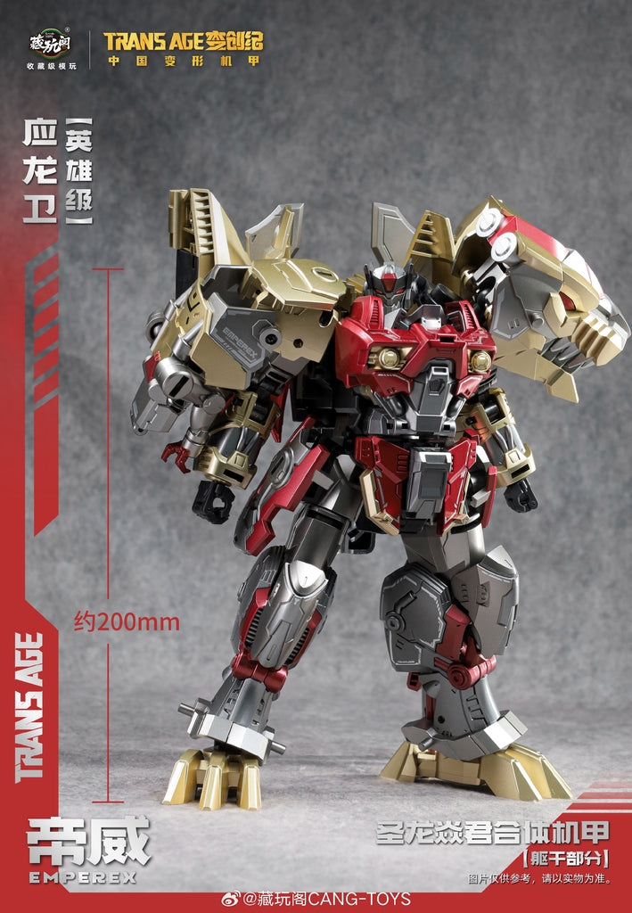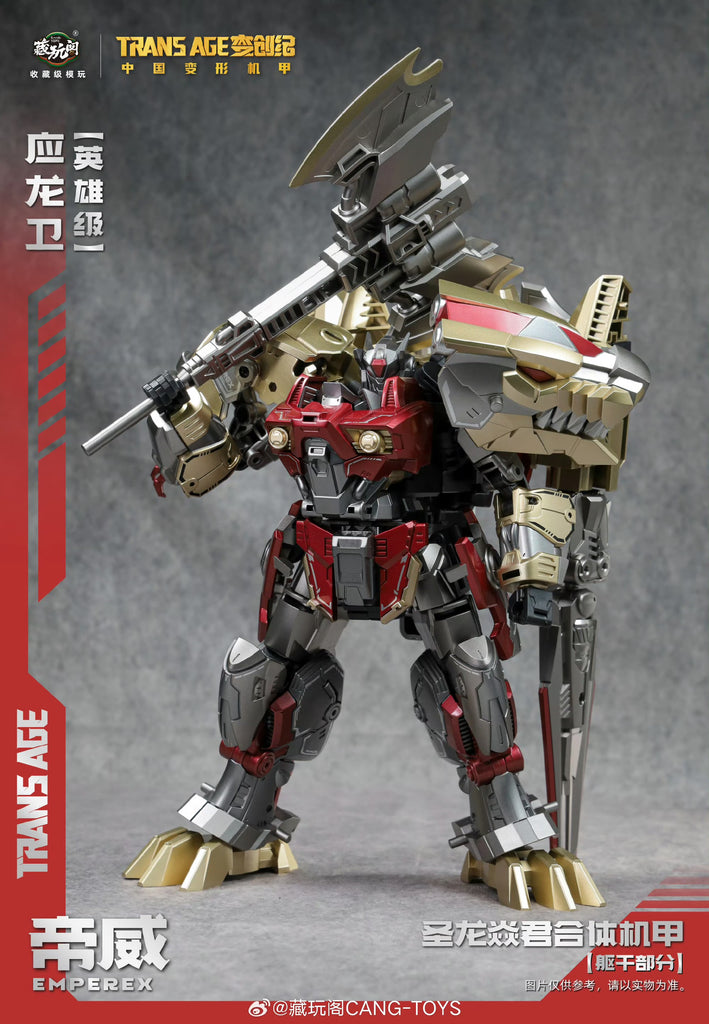 This TA-HYL006 is the Hero-class version of Cang Toys Longyan-06 Emperex. It is a minified version of the original Longyan-06 Emperex (not released yet) with a few adjustment on the structure. See below photo for the different size of the different classes of Cang Toys.