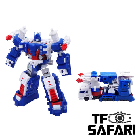 MP size FM02 FM-02 Margh in homage to G1 Ultra Magnus, it can transform into a white truck with its ourter armor transforming into the trailer / convoy.