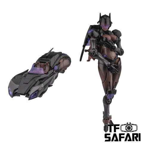 This Newage H48S Sif( Inspired by G1 Arcee ) by NewAge is of legends scale and transforms into a black Cybertronian race car. It is a repainted version of H48
