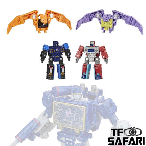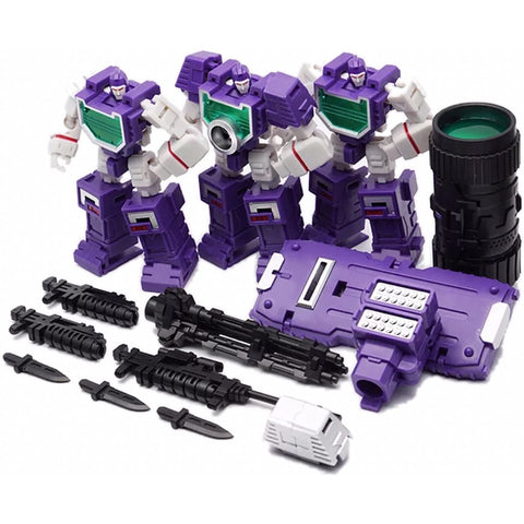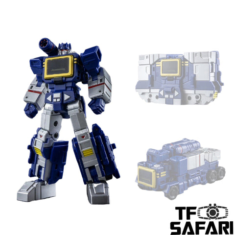 Here comes the reissue of the classic cute tiny Sound Track (Soundwave) by Mech Planet, the whole set includes main figure, accessories and one cassette warrior - Laserbeak.