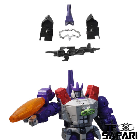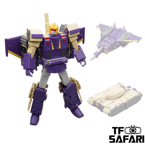 *Note: Comparing to the MS20 Iron Sky, this set is done by another designer with some different details like head sculpt, shoulders and painting color tone. This figure is closer to the image of Astrotrain in IDW comics.