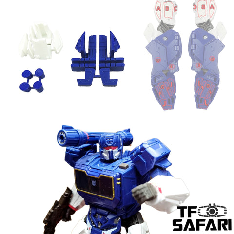 Features: *Note: This new version includes 4 x gap fillers for the bottom of the feet, comparing to the old sets. This is not a new set, but we think there might still be friends who need it. This helps the WFC Siege Soundwave reaching its perfect form. The whole sets includes gap filling parts for the front / back knees and the arms. Note: 1. The whole set comes with painting (as shown on the product photo), 2 color tones are available for Siege Soundwave / Soundblaster. 2. The whole set can be installed by simply plugged into the body of the figure, no glue is needed. The filling parts for the arm is movable (for hiding the fists in disguise mode). 3. There might be color difference and preciseness issue for 3D-printed products, which can not be avoided and can't be considered as quality defect, pls understand. ...
