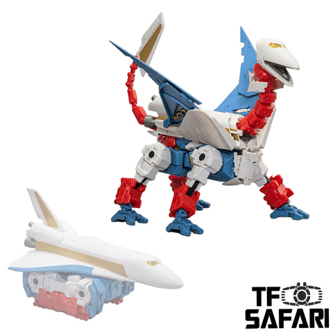 Both of the two sets are of high articulation and poseability, and features LED light-up eys. Magna transforms into a tank while Inventa transforms into a space shuttle. It isyour only choice for real MP-size Sky lynx with top quality.