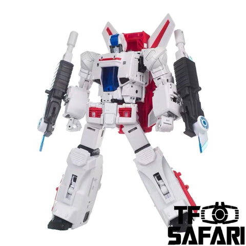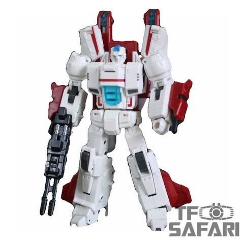 This Newage H45EX Firefox ( Inspired by G1 Jetfire / Skyfire) by NewAge is of legends scale and transforms into a white giant Cybertronian aerotransport.