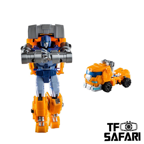 Features: *Note: 1. This is the 7 in 1 set including all members and accessories; 2. This is the G2 version (yellow color version); 3. This figure comes with the latest upgrade replacement parts for the legs of the combiner. This Hephaestus( in homage to G1 Devastator ), would be the 1st legends-class combiner brought by NewAge ( A new 3rd party Transformer studio focusing on pocket size toys), the whole set features as below: - contains 6 members and 1 set of accessories : H29 Raum & H30 Vine, H31 Crocell & H32 Marbas, H33 Berith & H34 Paimon, Main body of the Combiner; - Die-cast parts included in every member; - Head sculpt of the combiner can be changed; - Head sculpt can be switched between two modes and lit up by the LED inside; - The combiner would request an integrated accessory kit which may be offered seperately. The combiner would be of extremely high articulation. ...