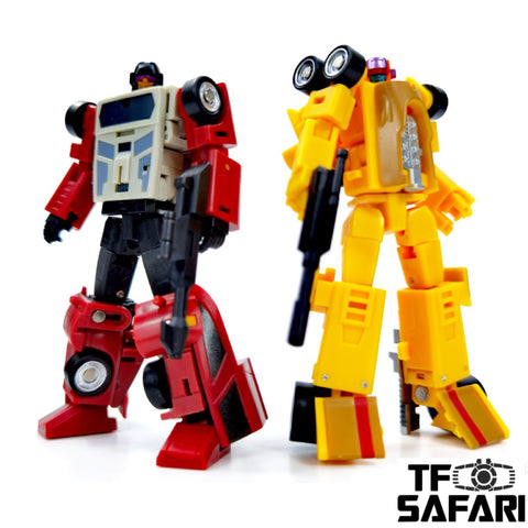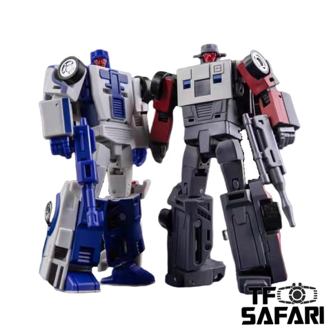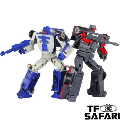 The two robot figures transform into race cars, in homage to G1 Breakdown & Wildrider (member of the Stunticons), probably this is the first attempt of Magic Square to make a combiner ( This set should function as a part of the combiner, in homage to G1 Menasor)