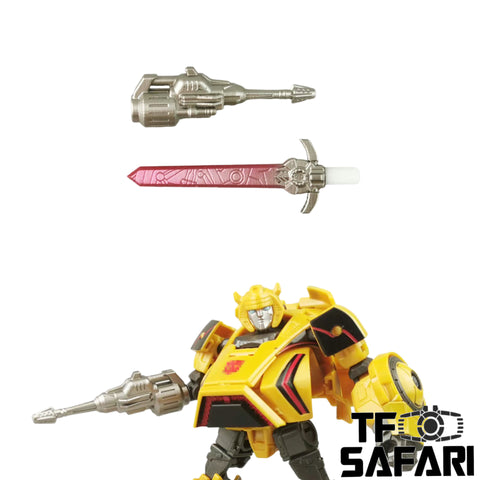 A new set for WFC Earthrise Bumblebee. The whole set would include a hand gun and a jet pack for bumblebee. The jet pack would be a plug-on set and needs to be removed under vehicle mode.