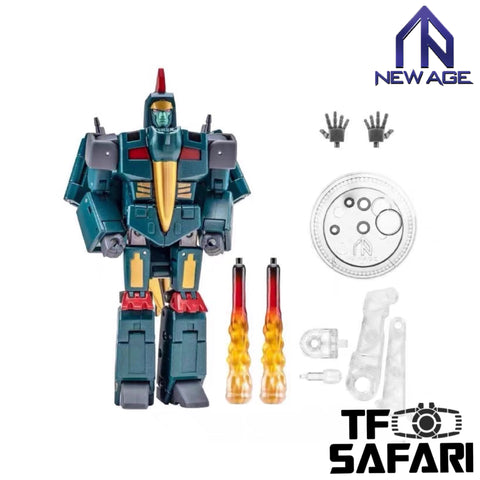 Features: This NA H44 Ymir would be a new legends class figure ( in homage to G1 Grimlock ), brought by NewAge ( A famous 3rd party Transformer studio focusing on pocket size toys) This figure features: - The heaviest Newage figure ever; - die-cast parts ( Both of the two feet for robot mode and the dinosaur mode) - Highly articulated dinosaur head / forepaws / tails (with multiple joints added to these parts); - Color of the eyes (dinosaur mode) can be changed; - Baking finish for the whole body; - Fire effect part is included (can be connected with the sword handle to form a fire sword) The whole set includes: 1 x Ymir main figure 1 x Blaster 1 x fish model 2 x Changeable hands 1 x Fire effect part + 1 x Sword handle 1 x Roller Status: 2025-3 Reissue batch in stock. Parameters: Producer NewAge (NA) Size 13.5cm / 5.3" Material ABS Plastic Shipment From...