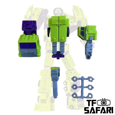 Features: *Note: 1. This is the 7 in 1 set including all members and accessories; 2. This is the toy color version; 3. This figure comes with the latest upgrade replacement parts for the legs of the combiner. This Hephaestus( in homage to G1 Devastator ), would be the 1st legends-class combiner brought by NewAge ( A new 3rd party Transformer studio focusing on pocket size toys), the whole set features as below: - contains 6 members and 1 set of accessories : H29 Raum & H30 Vine, H31 Crocell & H32 Marbas, H33 Berith & H34 Paimon, Main body of the Combiner; - Die-cast parts included in every member; - Head sculpt of the combiner can be changed; - Head sculpt can be switched between two modes and lit up by the LED inside; - The combiner would request an integrated accessory kit which may be offered seperately. The combiner would be of extremely high articulation. ...