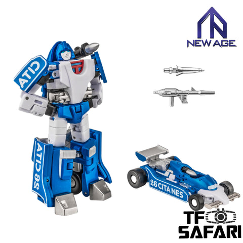 This New Age H2EX Manero ( Inspired by G1 Jazz ) by NewAge (A new 3rd party Transformer Studio focusing on pocket size toys) is of legends scale and transforms into race car.