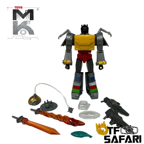Features: *Note: 1. This is the 7 in 1 set including all members and accessories; 2. This is the G2 version (yellow color version); 3. This figure comes with the latest upgrade replacement parts for the legs of the combiner. This Hephaestus( in homage to G1 Devastator ), would be the 1st legends-class combiner brought by NewAge ( A new 3rd party Transformer studio focusing on pocket size toys), the whole set features as below: - contains 6 members and 1 set of accessories : H29 Raum & H30 Vine, H31 Crocell & H32 Marbas, H33 Berith & H34 Paimon, Main body of the Combiner; - Die-cast parts included in every member; - Head sculpt of the combiner can be changed; - Head sculpt can be switched between two modes and lit up by the LED inside; - The combiner would request an integrated accessory kit which may be offered seperately. The combiner would be of extremely high articulation. ...