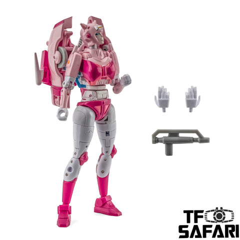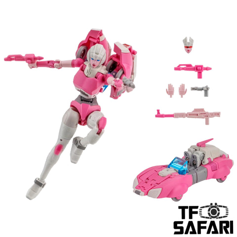 This Newage H48 Maschinenmensch( Inspired by G1 Arcee ) by NewAge is of legends scale and transforms into a pink Cybertronian race car.