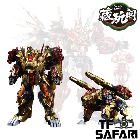 This CT-Chiyou-04X Kinglion (in homage to Razorclaw of Predacons)is the 4th figure for its Chiyou combiner team(original design, inspired by the Predaking combiner). It transform into a heavily armed lion and the upper torso of the Chiyou comibiner.