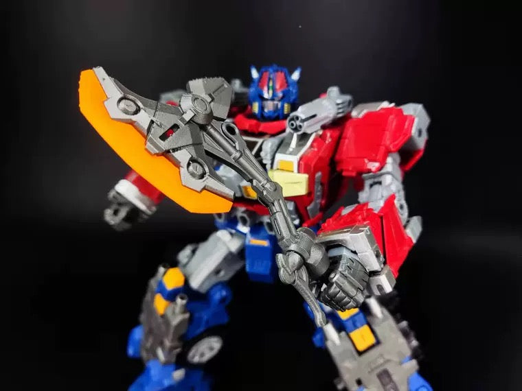The weapon is made in a Cybertronian style and may also fit to other Optimus Prime (like SS38)