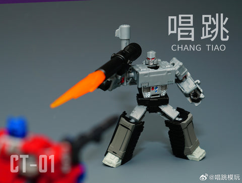 A new legend-class figure brought by Chang Tiao Model in homage to G1 Megatron and can transform into a laser gun. It comes together with the Laserbeak / meteor hammer as accessories.