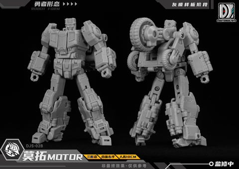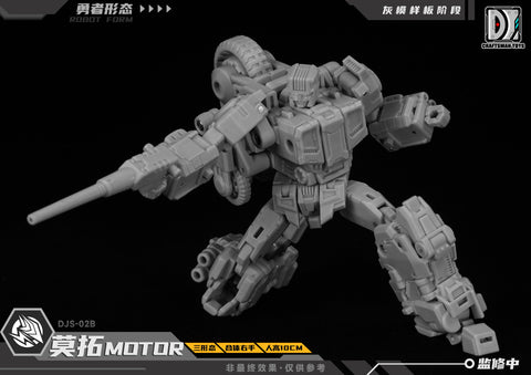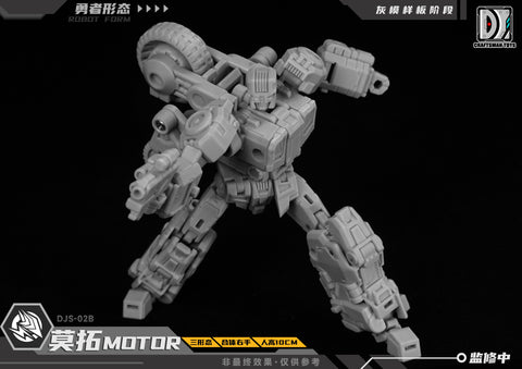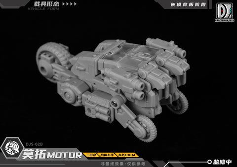 This DJS-02B Motor in homage to Afterburner in the Technobot in G1 / IDW Comics, is a legendary scale robot-like figure which transforms into an armed motorcycle as well as one arm of the combiner.