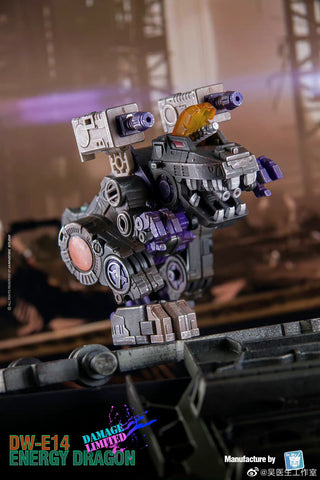 The DW-E18 Engergy Dragon (in homage to Decepticon Trypticon) is a quadraple-changer. It can tranform into a mechanic dinosaur / a battle base / a tank. The 4th disguise mode needs to be discovered by yourself.