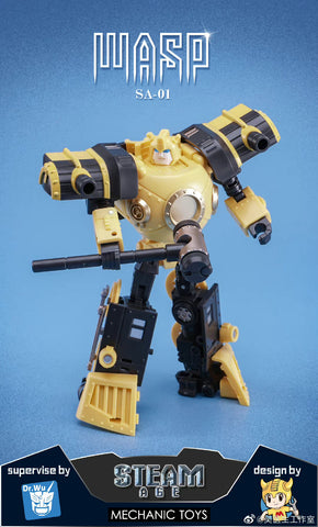 This SA01 Wasp is paying homage to the image in IDW comic: Hearts of Steel. This robot transforms into locomotive with a hammer as its weapon. This is a reissue version of HS14 Iron Hero Bumblebee