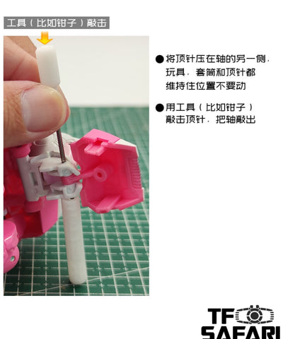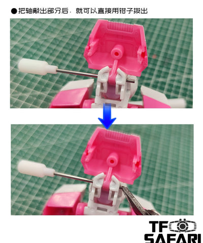 A simple tool designed by Go Better Studio to help you easily remove the pin / shafts on your toy figures for futher upgrade.
