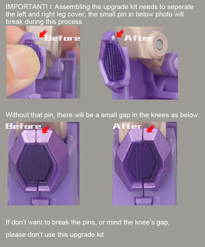 2.The installation of the part may cause a small socket on the knee to break(though it wont effect the appearance and articulation of the whole figure)