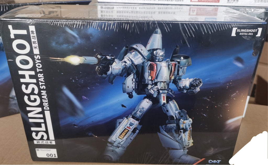 The DST01-001 Slingshoot, in homage to the classic G1 image of Slingshot, is designed originally by Dream Star Toys (A new 3rd party studio for transformers). It transforms into a Harrier Jump Jet (accurately following the real design of the Harrier Jet).
