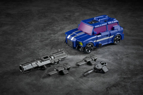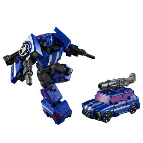 This EX40 Mini One Man Army by Iron Factory (3rd party Transformer Studio focusing on pocket size toys) is of legends class and transforms into a small red van. It is in homage to the image of Cliffjumper in the IDW comics.