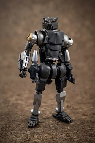 This R-40 Jaguar brought by Mastermind Creations / MMC (3rd party Transfomer Designer). is a re-designed Ravage following a brand-new image in IDW comics named “Jaguar” (it transform into a robot,not a cassette any more). The set comes together with upgrade kits for R-28 Tyrantron.