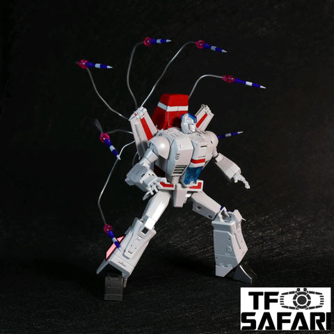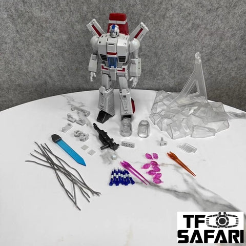 This is a 1:1 KO version of Newage H45EXR Firefox ( Inspired by G1 Jetfire / Skyfire) with a modified headsculpt and a lot accessories:
