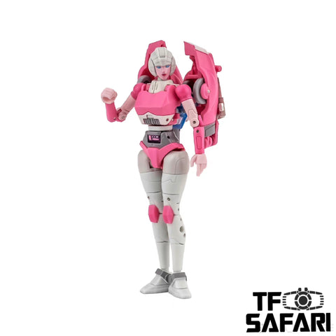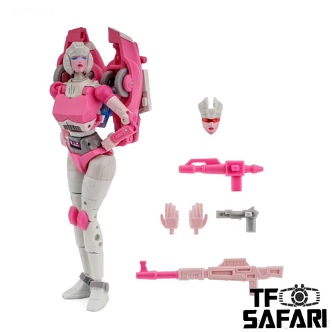 This Newage H48 Maschinenmensch( Inspired by G1 Arcee ) by NewAge is of legends scale and transforms into a pink Cybertronian race car.