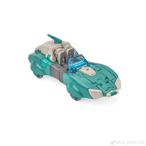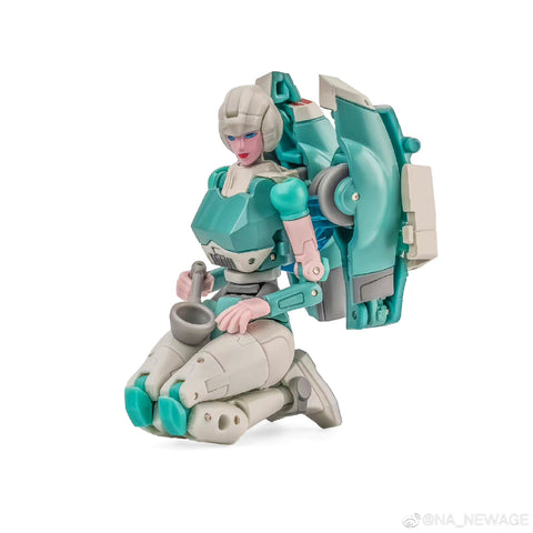 This Newage H48G Pocahontas( Inspired by G1 Lifeline) by NewAge is of legends scale and transforms into a green Cybertronian race car. It is a repainted version of H48