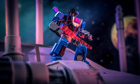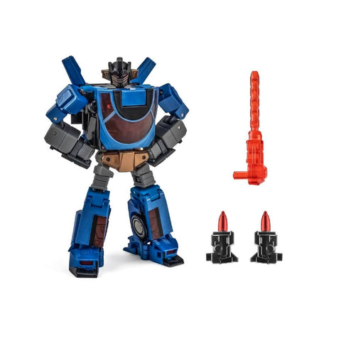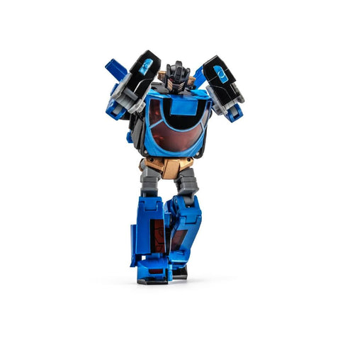 This NewAge H49B Caligari( Inspired by Shattered Glass Wheeljack ) by NewAge (A famous 3rd party Transformer Studio focusing on pocket size toys) is a Legend-size robot figure which can be transformed into an armed race car.