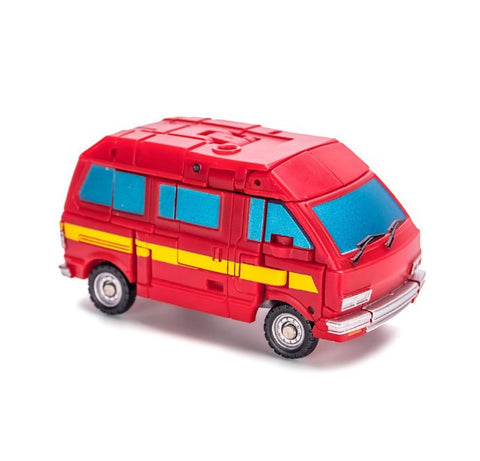 This NewAge H7 Mccoy ( Inspired by G1 Ironhide ) by NewAge (A new 3rd party Transformer Studio focusing on pocket size toys) is of legends scale and transforms into a red van.