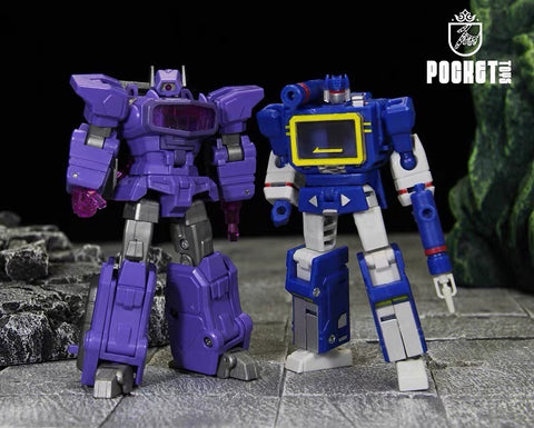 This TS04 Soundwave by Pocket Toys (3rd party / 4th Party Transformer manufacturer focusing on pocket-size toys) is a 1:1 K.O. version of DX9 X33 Sonic wizard, with 3 cassette warriors (Ravage, laserbeak, Ratbat) included in the whole set.