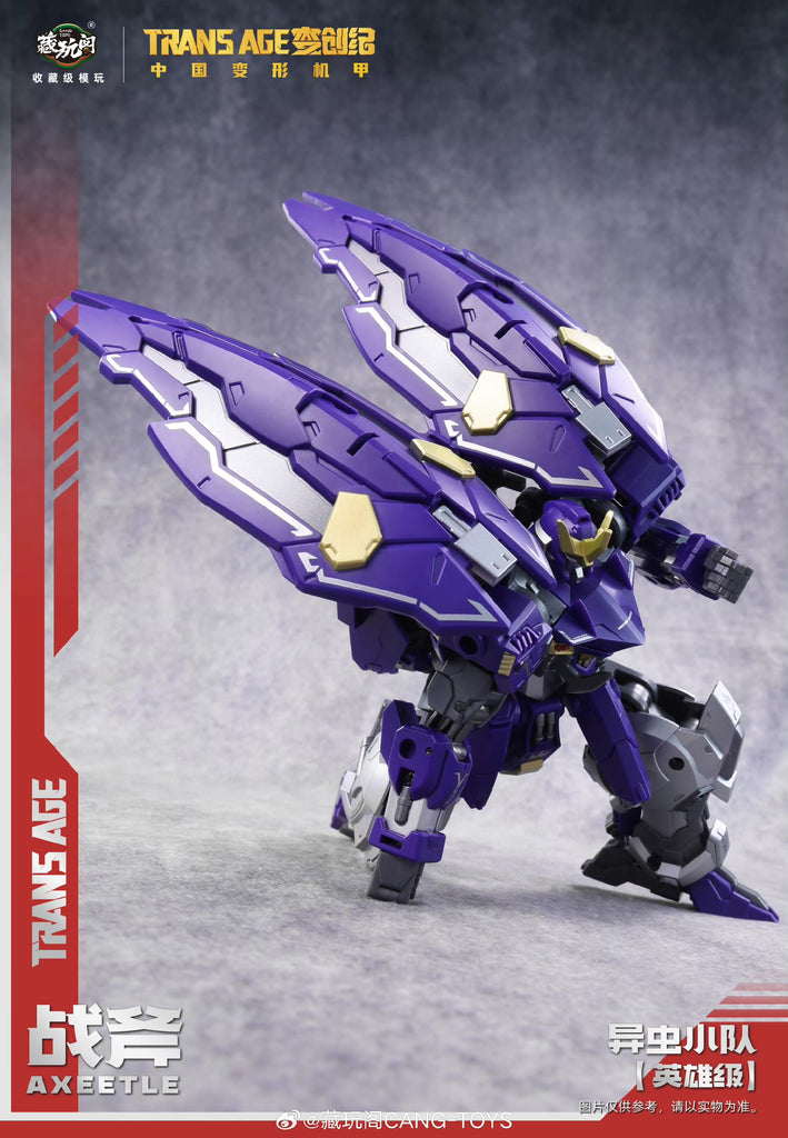 This Axeetle is a member of the 3-member Bergion team (original design, inspired by the Insecticons but of totally different designs). It transform into an armed rhino beetle. See product photos for details: