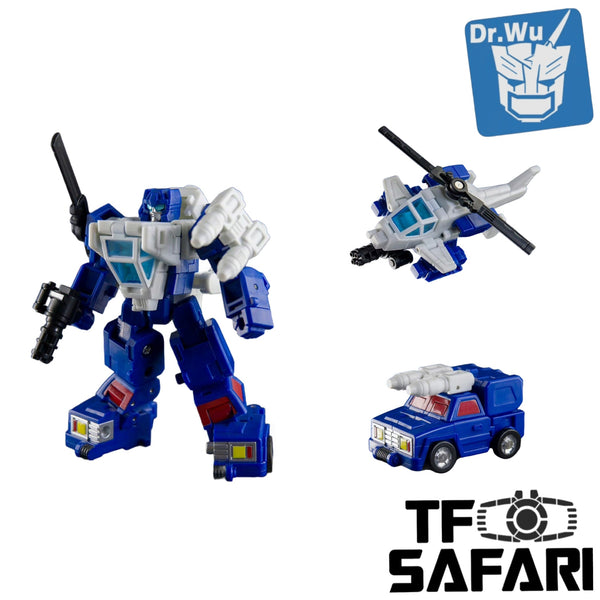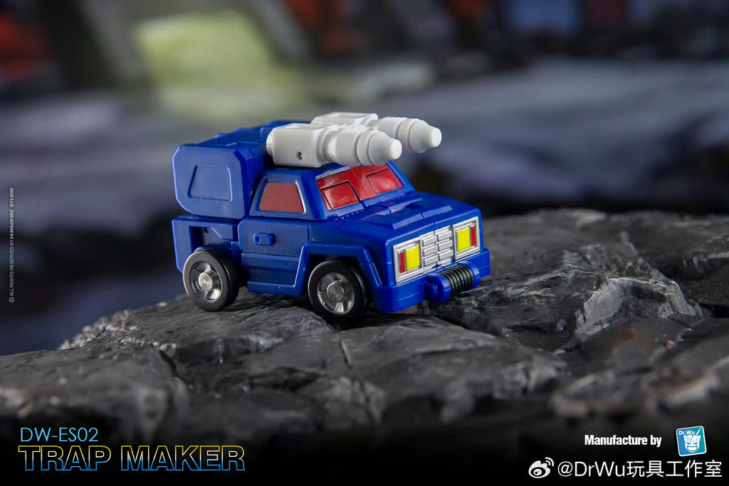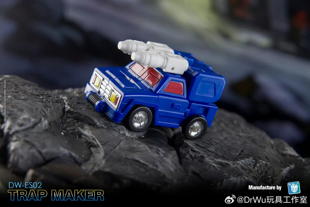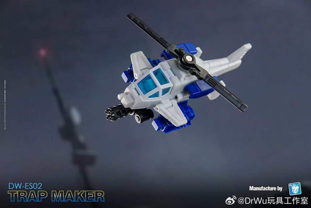 The DW-ES02 Trap Maker (designed by Dr.Wu Studio, in homage to G1 Battletrap) is a special robot with its upper body tranforming into a helicopter / lower body into a battle jeep.