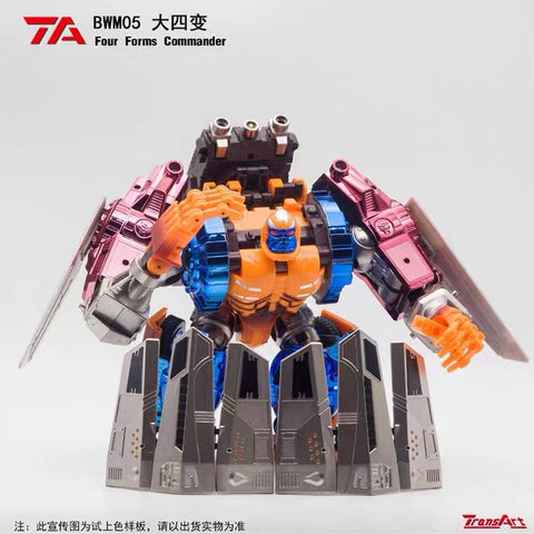 This BMW-05 Mighty Guardian, in homage to Transmetal Optimus Primal in Beast wars universe is another Quadra changer by TRANSART (A new 3rd party transformers producer which may probably focus on BW line), stands 25 cm (6.5 inches) and transforms into a mechanic gorilla, an armed motor and an cybertronian spaceship.