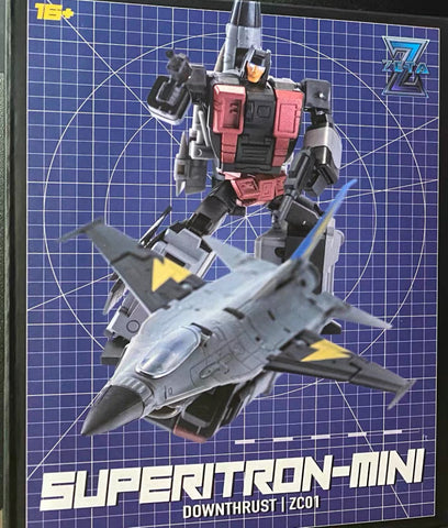 This ZC-01 Downthrust , by ZETA Toys in homage to the Skydive (member of the aerialbots), is a legend class robot figure transforming into a Jet Fighter. It can also combine with other 4 robot members of Sky Terror into the most giant combiner Kranos (in homage to G1 Superion).