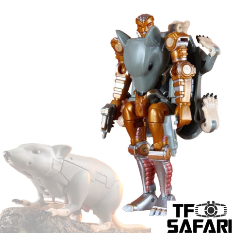 The beast-like robot transforms into a vivid rat in homage to Rattrap in the Transformers BW line.