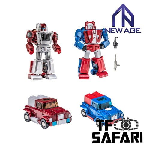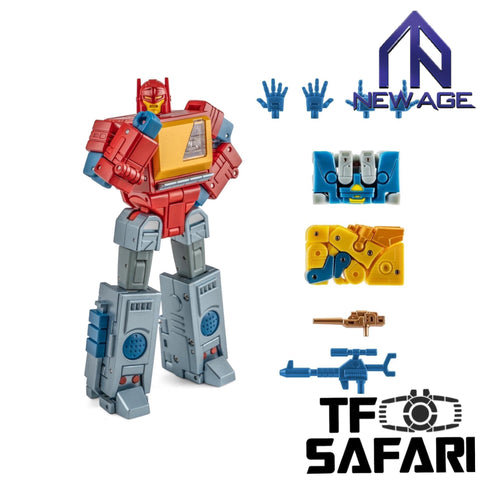 Features:  *Note: This is the H27U version in homage to OP in energon universe This new H27U David ( in homage to G1 OP ), brought by NewAge ( A new 3rd party Transformer studio focusing on pocket size toys) is of pocket size and transforms into a truck. It also comes with special painting. Still the figures would be small but delicate and of high articulation, while. The whole set includes: - 1 x Main figure. - 1 x Changeable head / 4 x Changeable hands - 1 x Matrix of Leadership - 1 x Energon Axe / 1 x Ion blaster   Status:  2025-6 New batch in stock Parameters: Producer NewAge (NA) Size Robot Form Approx. 11cm (4.3 Inches) Tall Material ABS Plastic Shipment From China Note Legends class toy