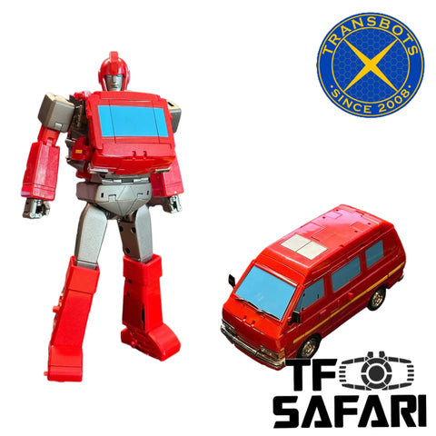Features: This MX-47 Ron by Xtransbots (A famous 3rd party transformer studio) would be a new robot figure with its size perfectly matching official MP series (in homage to Ironhide in the G1 Headmasters line ). It transforms into a red van and comes with several different accessories.    Status 2024-10 In stock. Parameters:  Producer Xtransbots Size Robot mode 18.5cm Tall Material ABS Plastic, Die-cast Shipment From China Note MP Size
