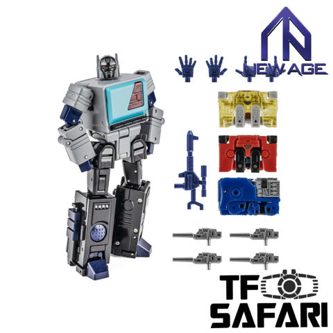 Features:  *Note: This is the link for shattered glass version. This NA H62B Blow Out would be a new legends class figure ( in homage to G1 Blaster ), brought by NewAge ( A famous 3rd party Transformer studio focusing on pocket size toys)  The whole set includes: 1 x H62B Blow Out main figure 1 x Laser blaster 4 x Silver pistols 2 x Pairs of Changeable hands 3 x Casette warriors - Red Robot / Yellow Robot / Blue Rhino   Status:  To be released in 4th quarter 2024, pre-order customer get special discount.    Parameters: Producer NewAge (NA) Size 13.5cm / 5.3" Material ABS Plastic Shipment From China Note Legends class toy