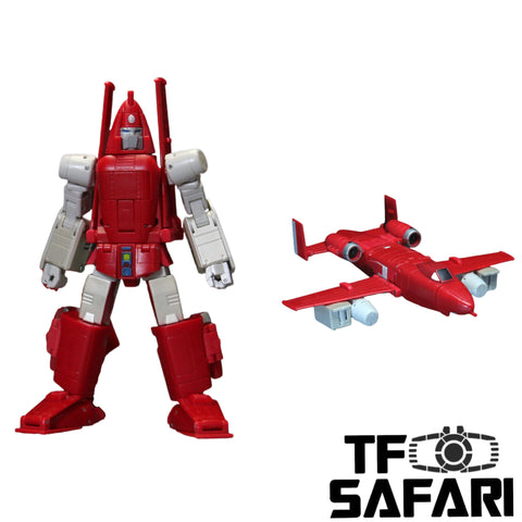 Features:  *Note: (1) Current stock is the new version with some defects improved. (2) The product link includes 2 different buy options, pls make sure you choose the right one you want. (3) No simplification on the structure while the finishing / texture / material is not as good as the original version. (4) Current MK05 version comes with NO extra accessories (no stands / no missiles) This is a 1:1 KO version of Newage H45 / H45B Firefox ( Inspired by G1 Jetfire / Skyfire) with a modified headsculpt and extra accessories.  Status:  2024-3 Improved version in stock. Parameters: Producer 4th Party (KO NA) Size 18cm / 7.1" Material ABS Plastic Shipment From China Note Legends class toy