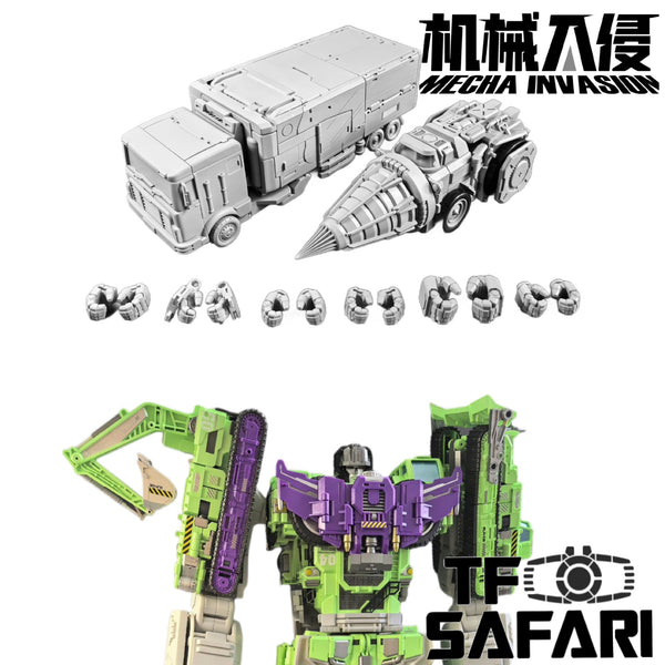 The new members (truck / driller) of the Giant legion Heavy Builder Combiner. They transform into the upgrade parts for the final combiner. See product photos for details.