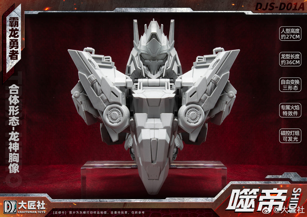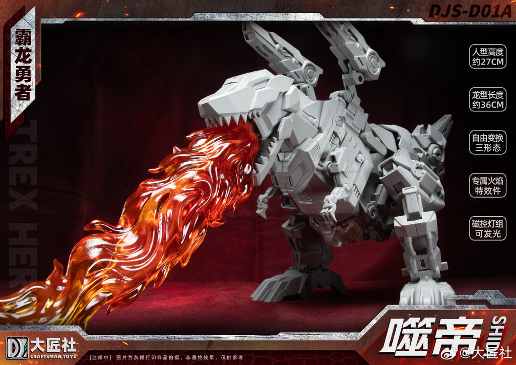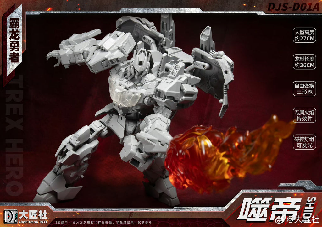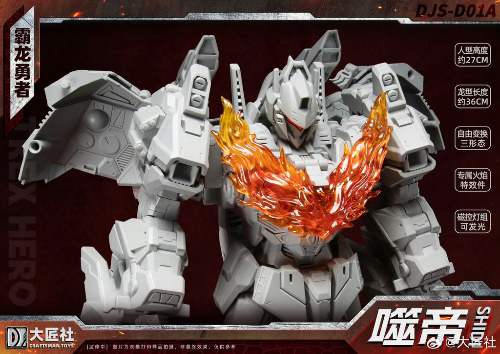 A new series (MP / Leader Class) by Craftsman Toys in homage to dinobots / Volcanicus. The main figure stands around 27cm while the whole combiner stands around 50cm. Other details are unknown yet.