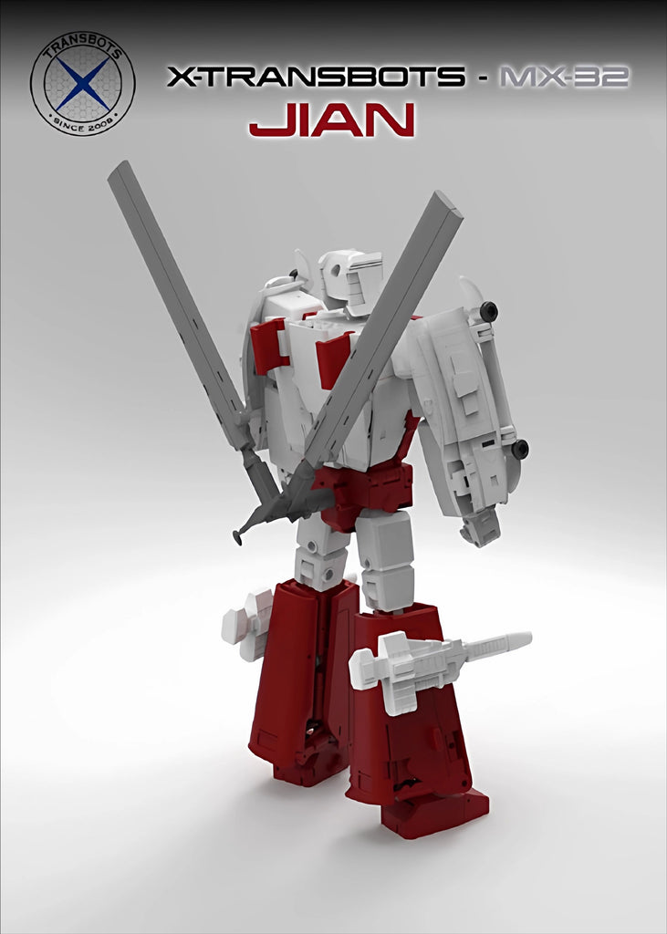 This MX-32 Jian by Xtransbots (A famous 3rd party transformer studio) would be a new robot figure with its size perfectly matching official MP series (in homage to G1 Perceptor ). It transforms into a helecopter as well as the right arm of the final combiner.