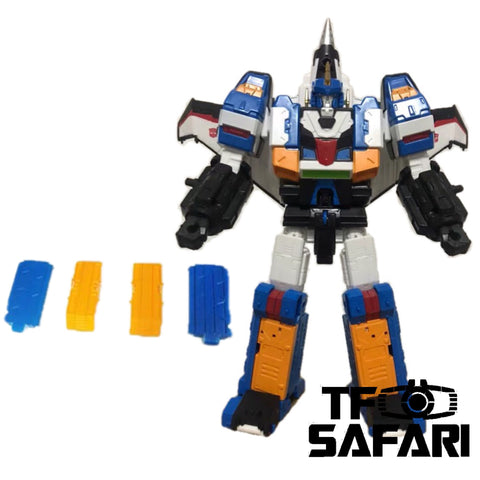 Features: This ZETA Kronos , by ZETA Toys in homage to the G1 Superion is the mighty combiner of the 5 members of aerialbots. The 5 aerialbots members forms the most giant combiner Kronos (in homage to G1 Superion), with Silver Arrow as the main body (all the accessories needed for combination stays with the box of Silver Arrow.) Each member also features a solid robot form and a vivid vehicle mode. Buy all the members individually here: ZB-01 Fly Fire (Fire Light)ZB-02 Air Strike (Air Raid)ZB-03 Silver Arrow (Silverbolt)ZB-04 Catapult (Slingslot)ZB-05 Downthrust (Skydive) *The 5 sets would be delivered in one time but in 3 different parcels to reach the fastest and most economic way. *The ZB-03 toy is extremely heavy (including accessories needed for the combination)so we apply large package delivery method which is more economic and reliable, it is still free but takes around 15-25 business days (exact time span is upon to the postal service provider). Status:...