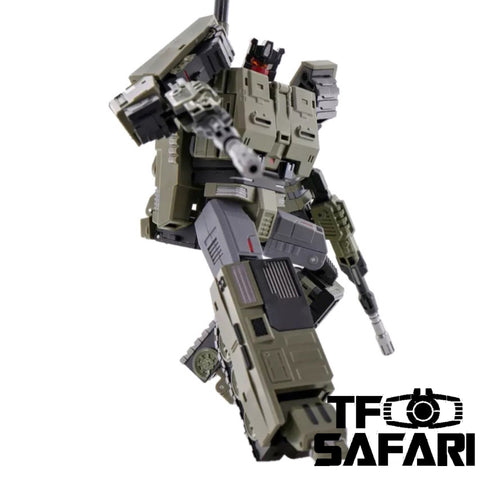 This UT M03 Kalecgo, as the main body of the Ragnaros (in homage to G1 Onslaught, member of the Combaticons and combines with the members into the mighty Bruticus), transforms into an armed truck in its disguise mode.