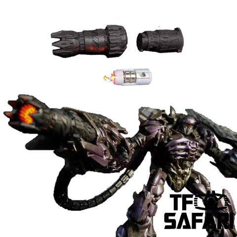 Features: Shockwave lab's weapon for the designer himself ^^ . The set is painted in black and comes with LED lights (as well as the button cells) to give an extraordinary orange light effect to the new mighty weapon for soundwave! The whole set includes: 3 x Blaster parts2 x Button cells (The set uses AG3 or LR41) TFSAFARI Instruction - How to install the cannon: 1.Dismantle the right on the figure (2 screws are needed to be removed ). 2.Replace the original blaster with the base part of the blaster, and then reassembly the arm. 3. Put the button cells into the LED parts, test the light effect (pay attention to the positive and negative ends) 4.Insert the LED part into the blaster part, make sure the switch is fit to the reserved slot on the blaster part. 5. Connect the blaster part to the base part, find the 3 connectors,...