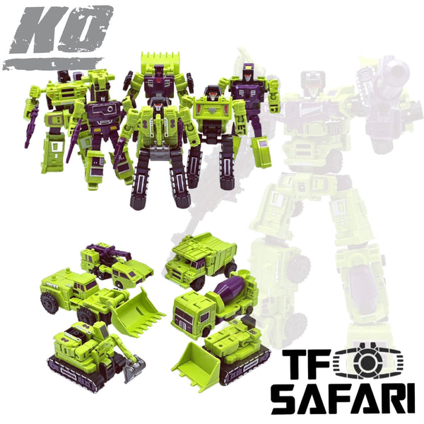 This is the 1:1 KO version of DX9 Hulkie Devastator combiner with 6 transformable members and new accessories. See product photo for details.